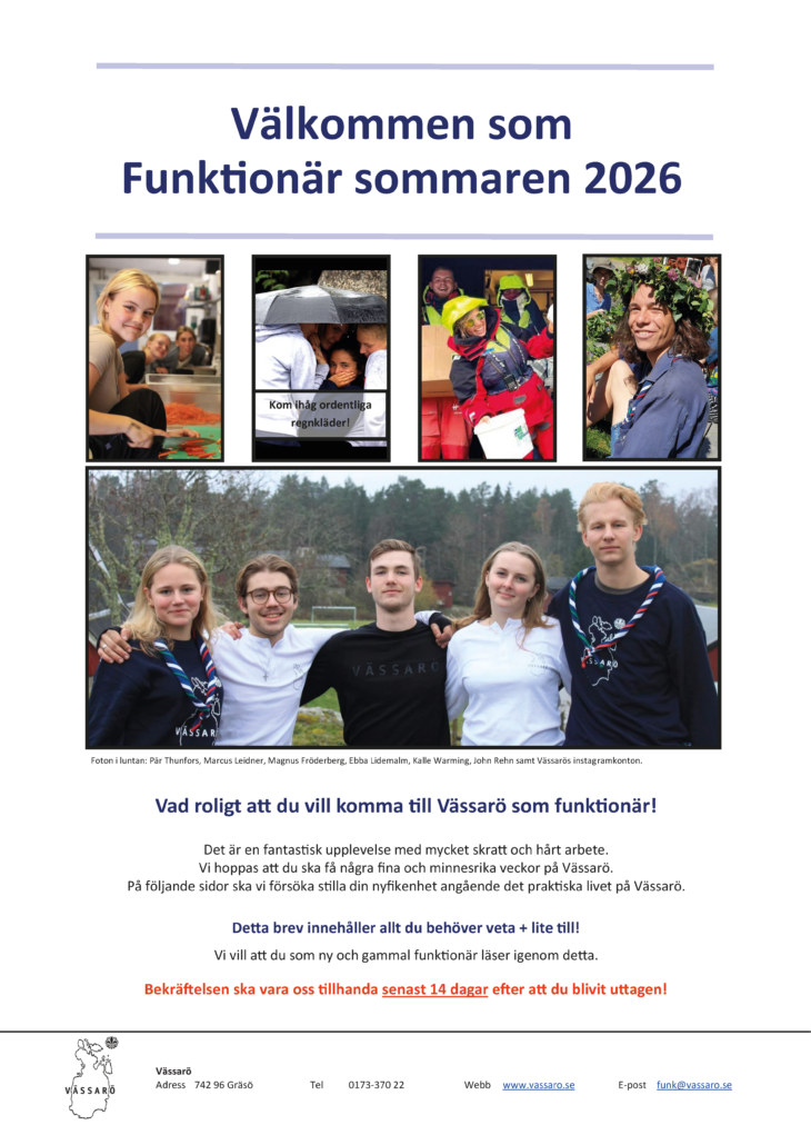 Vi vill informera dig om ett viktigt beslut som Stockholms Scoutdistrikts styrelse fattade inför förra årets säsong 2025. För att säkerställa en trygg och säker miljö för barn och unga inom vår verksamhet har styrelsen beslutat att Scouternas riktlinjer för trygghet och säkerhet ska gälla i hela distriktets verksamhet – även för funktionärer på Vässarö. Det innebär att alla som är 15 år eller äldre och har direkt och regelbunden kontakt med barn (personer under 18 år) behöver visa upp ett begränsat utdrag ur belastningsregistret.